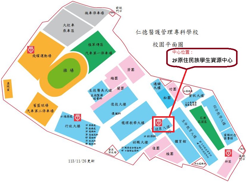 中心位置:↓健康大樓2F原住民族學生資源中心